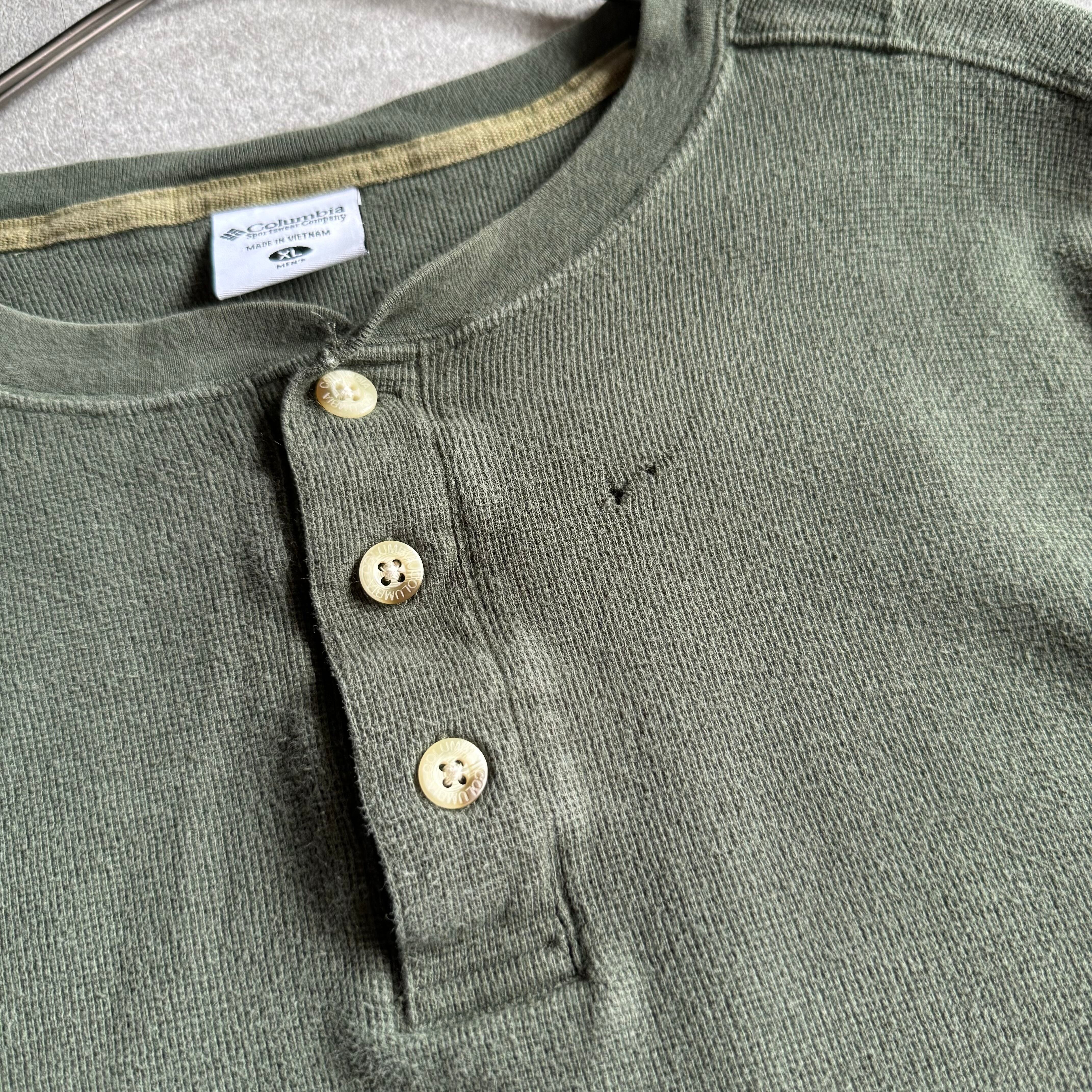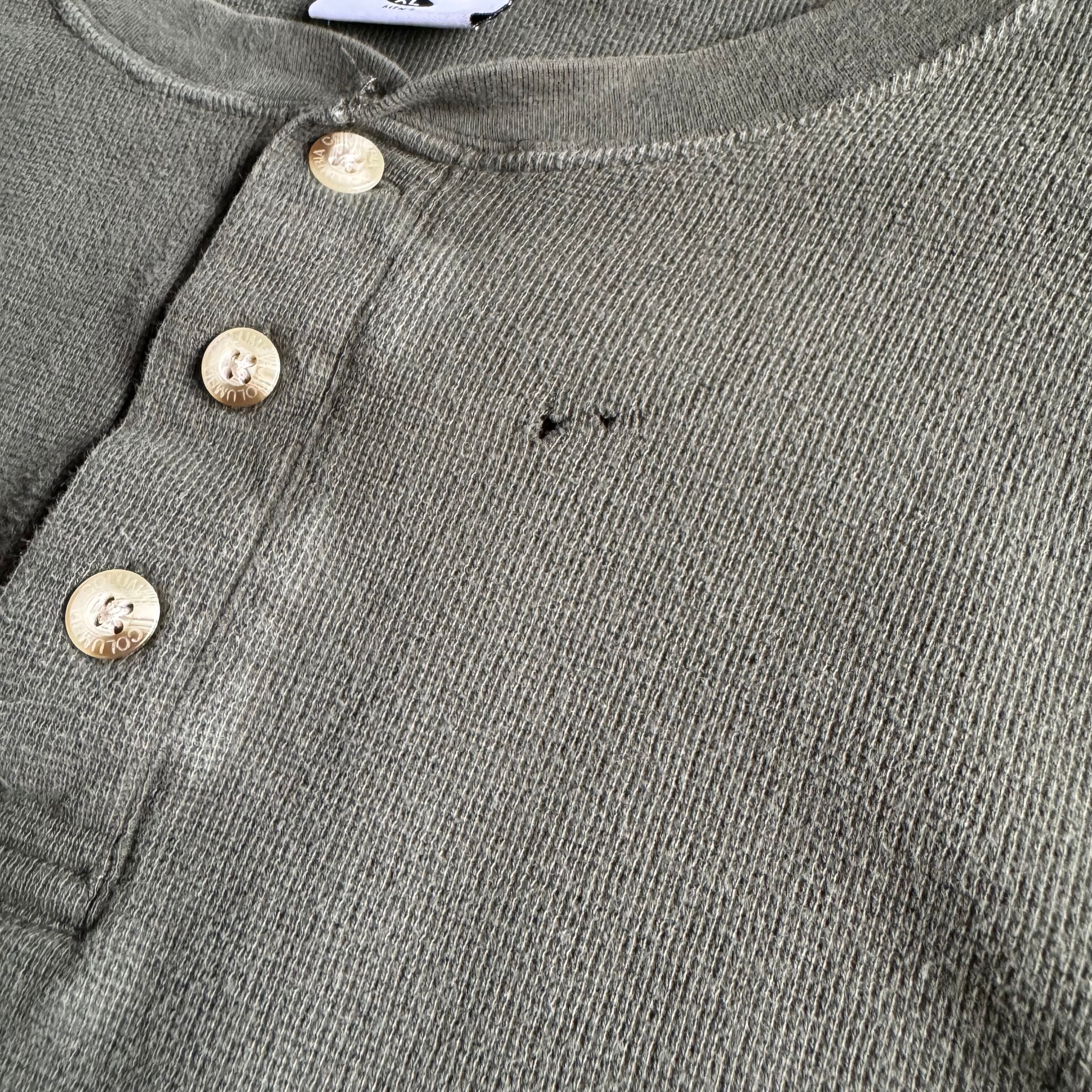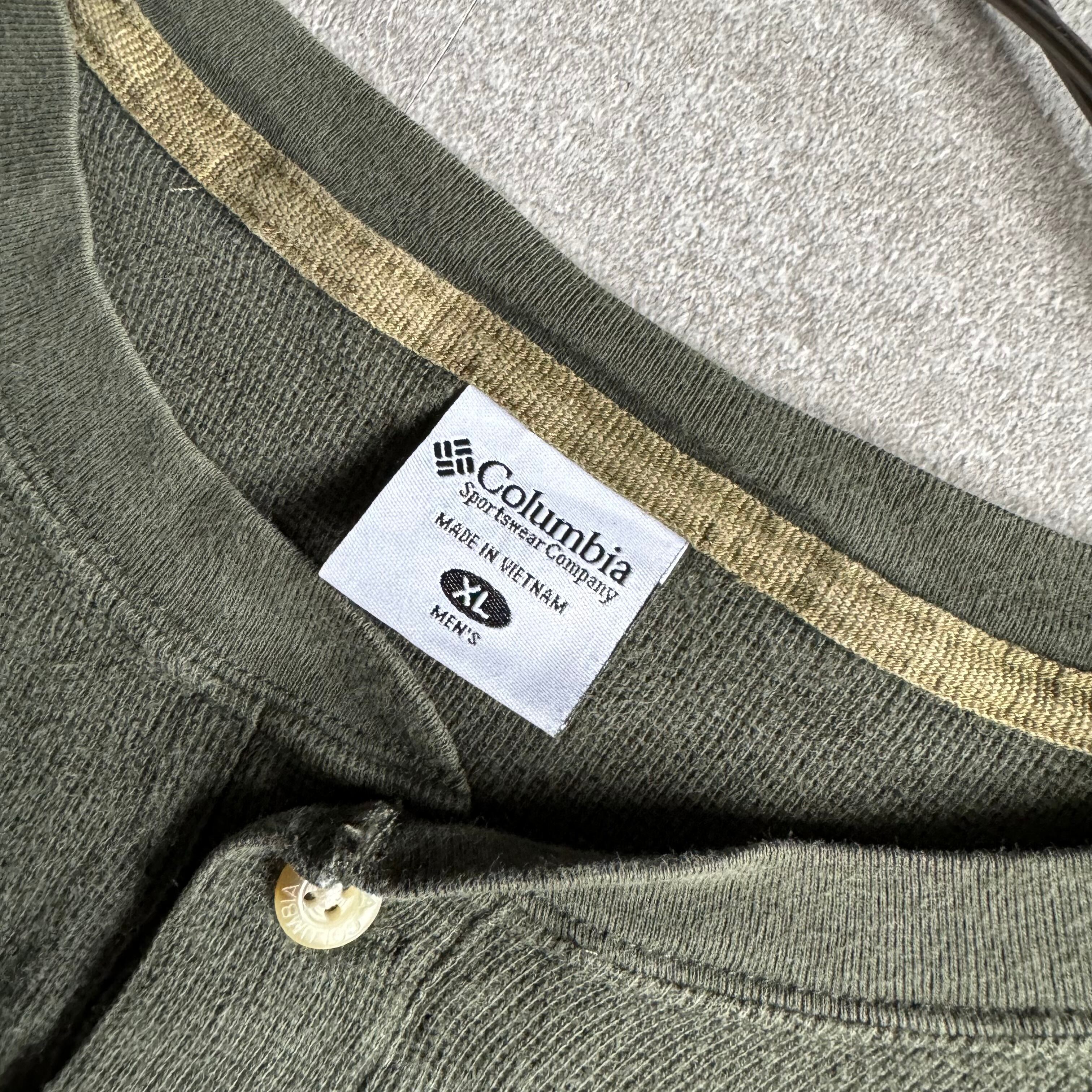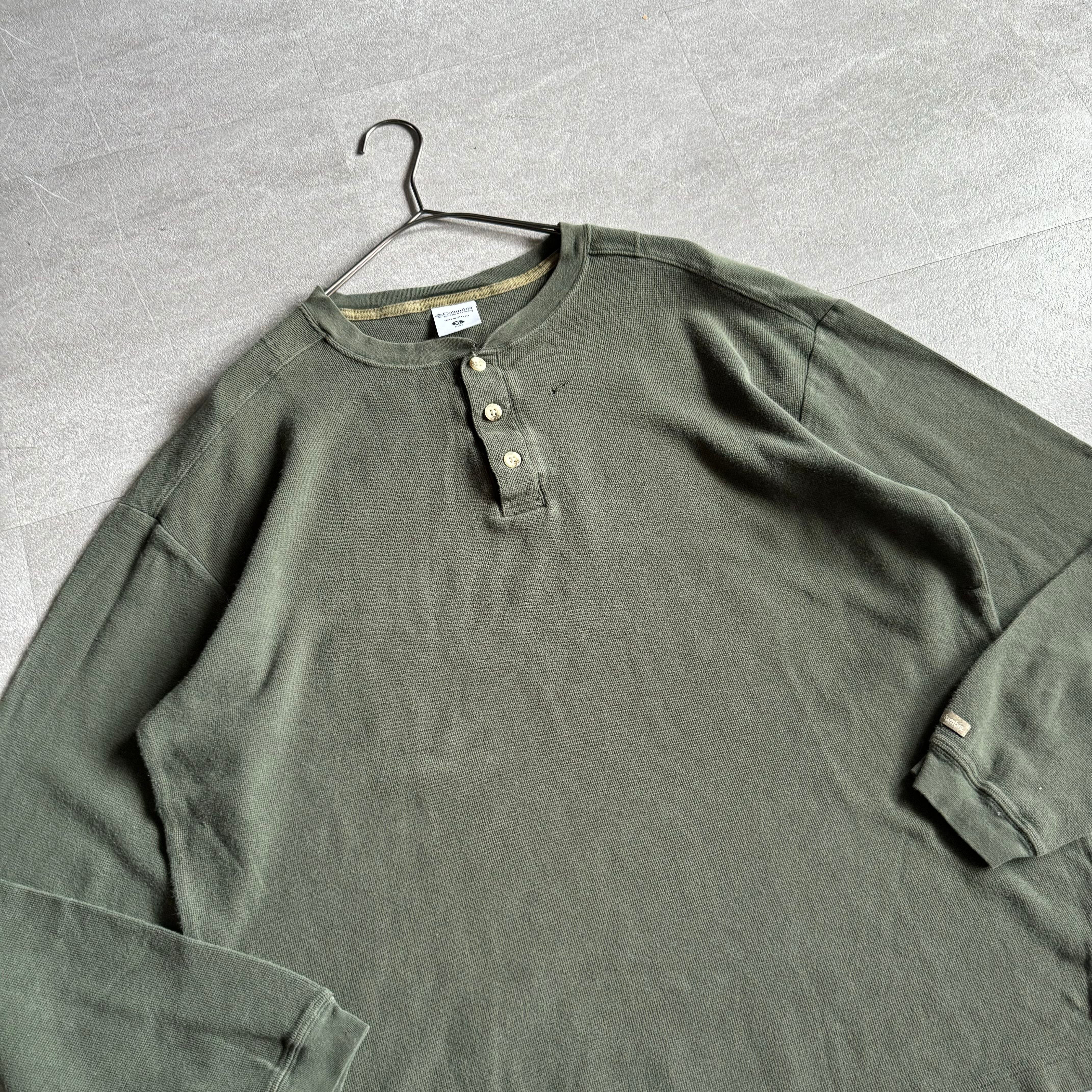 【USED】90~00's Columbia Henley neck long sleeve waffle TEE
