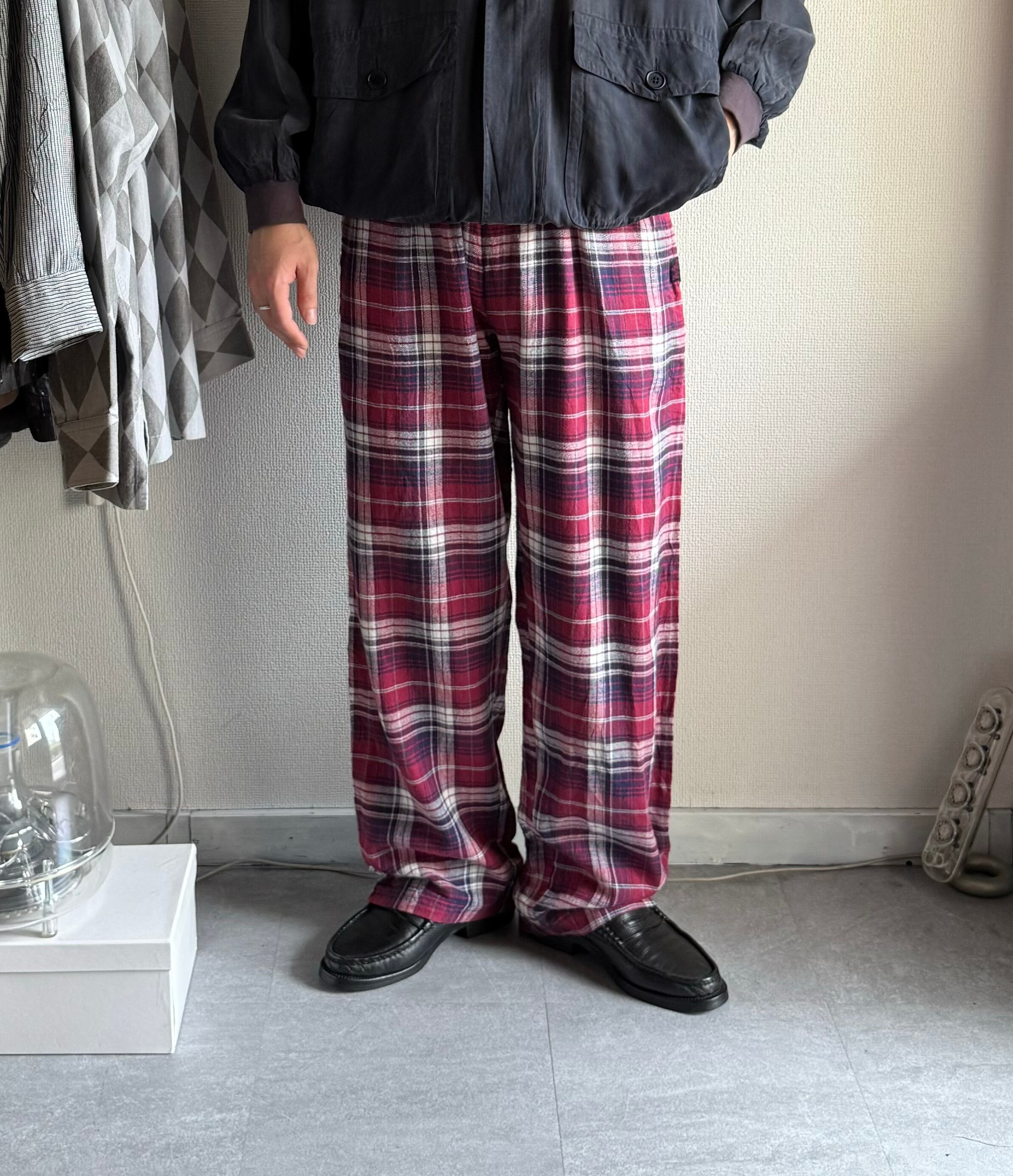 程よくワイドで柔らかいコットンネル素材のためストンと落ち感のあるシルエット。