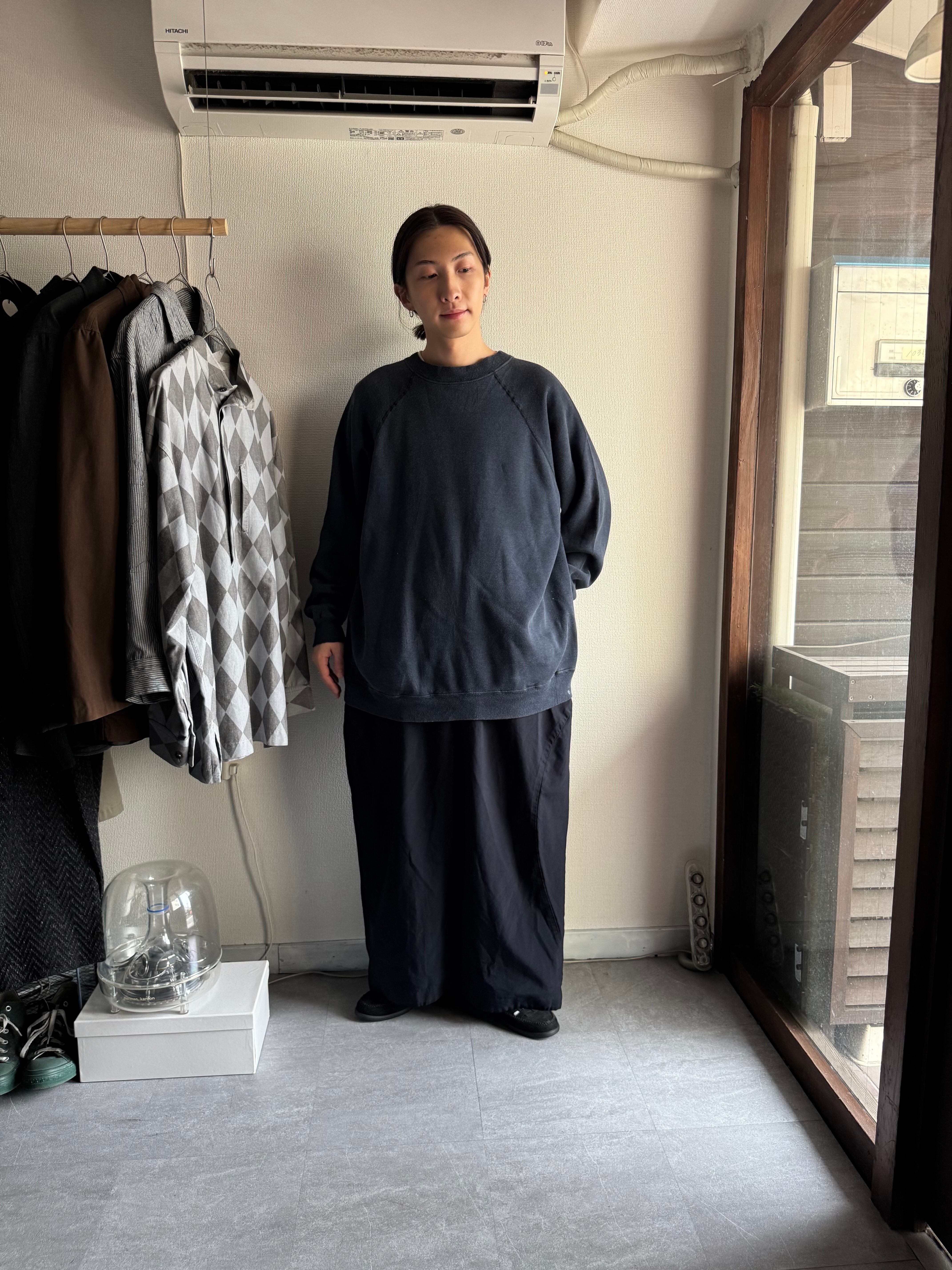 肩はラグランスリーブで、着用時は肩に沿って落ちてくれ、コットンポリ50/50のため軽く着心地もいい。