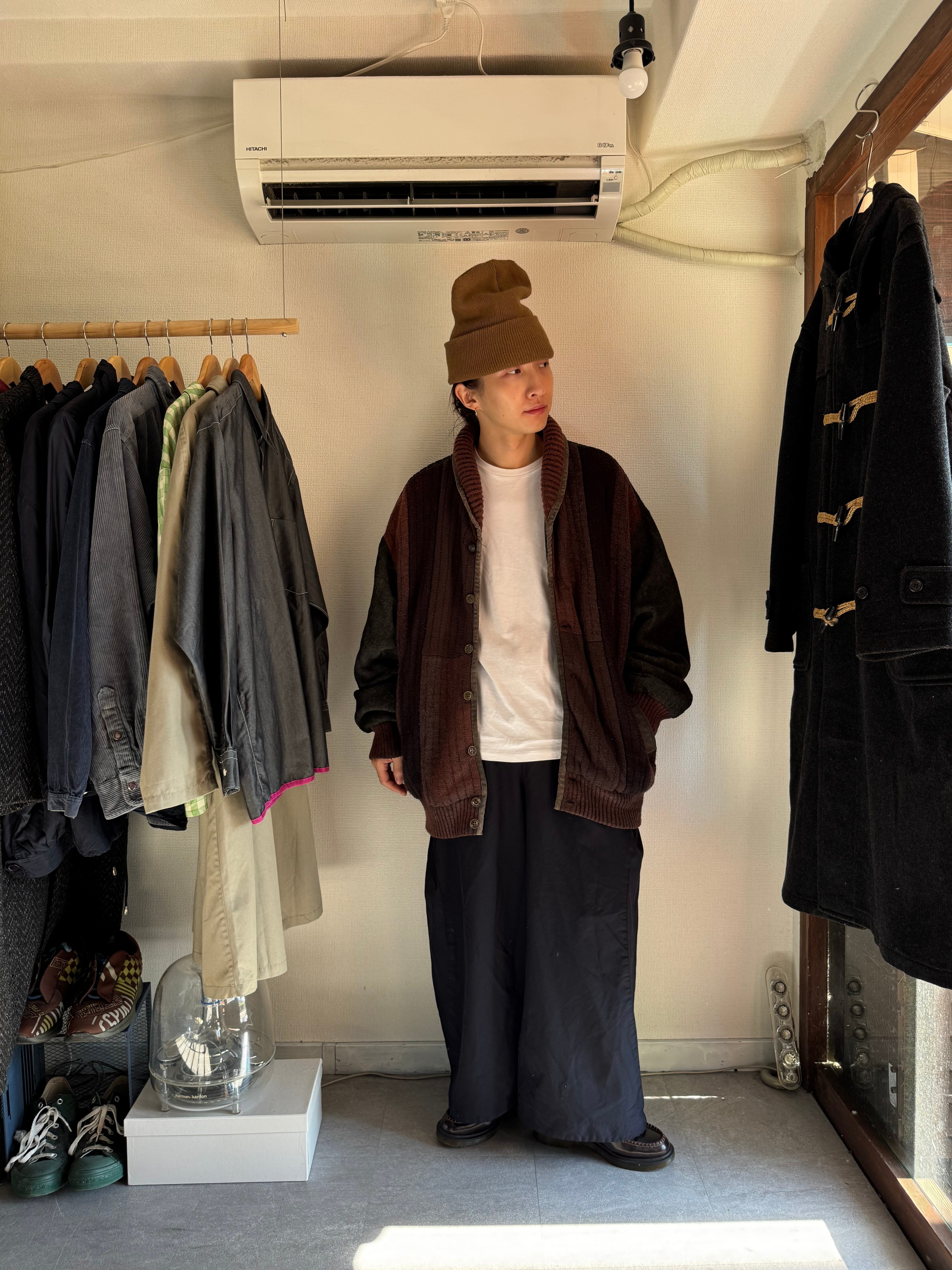 ジャケットとして薄手のニットやスウェットの上から羽織ってもいいし、使い勝手のいいアイテムかと思います。