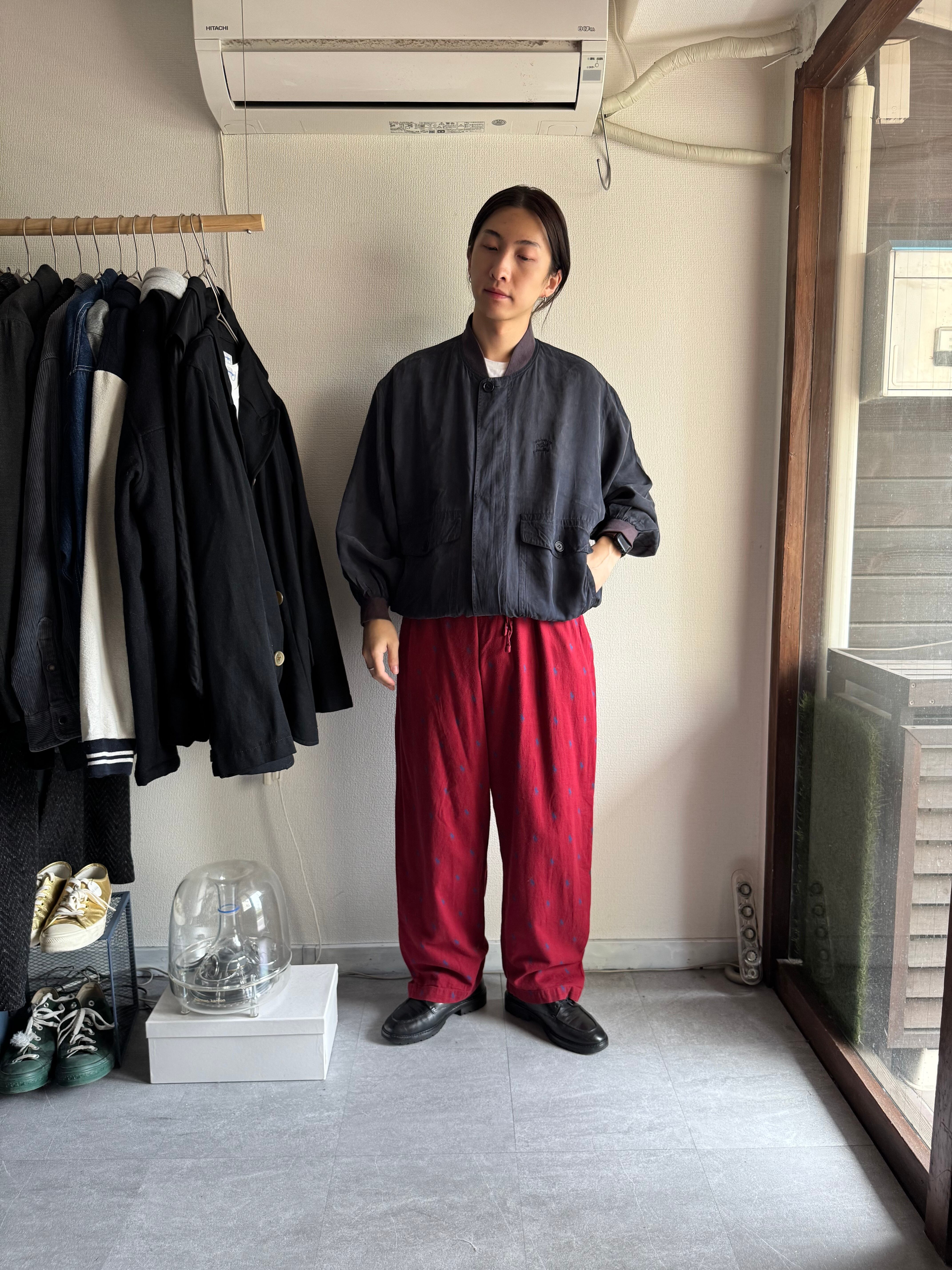 恐らくパジャマとして着られていたものなのでストレスの内容に、程よくルーズなシルエット。