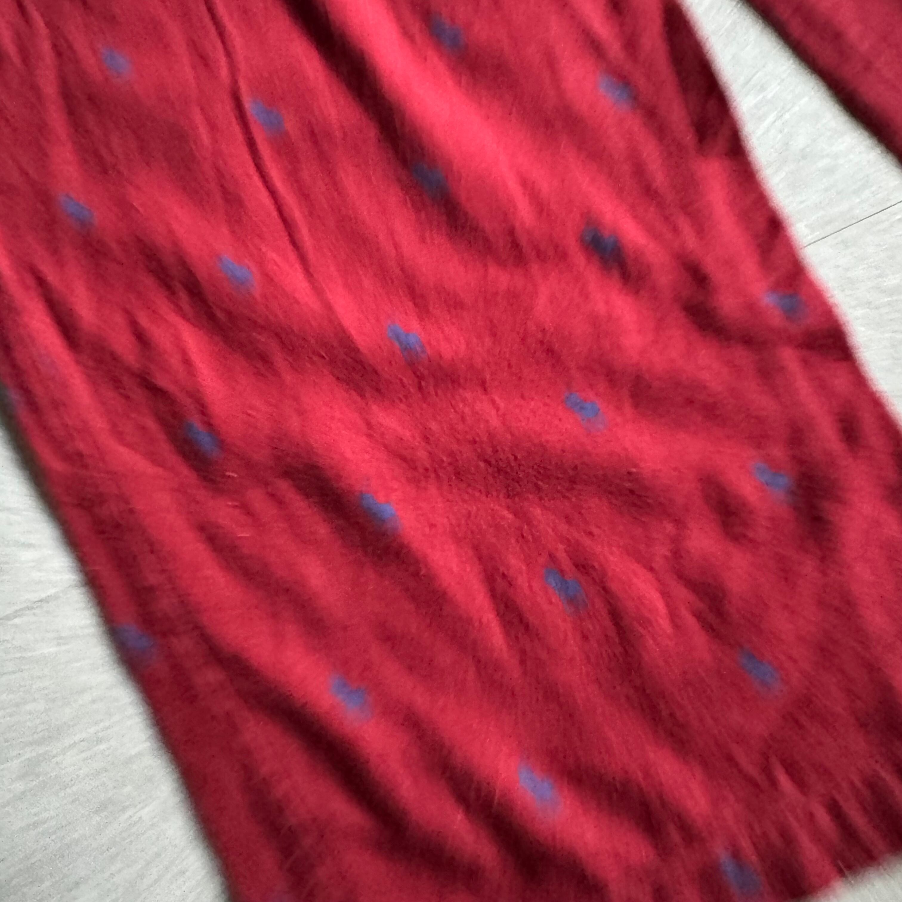 発色の良すぎないレッドカラーでテーラードや単色のニットにサラリと合わせても良さそう。