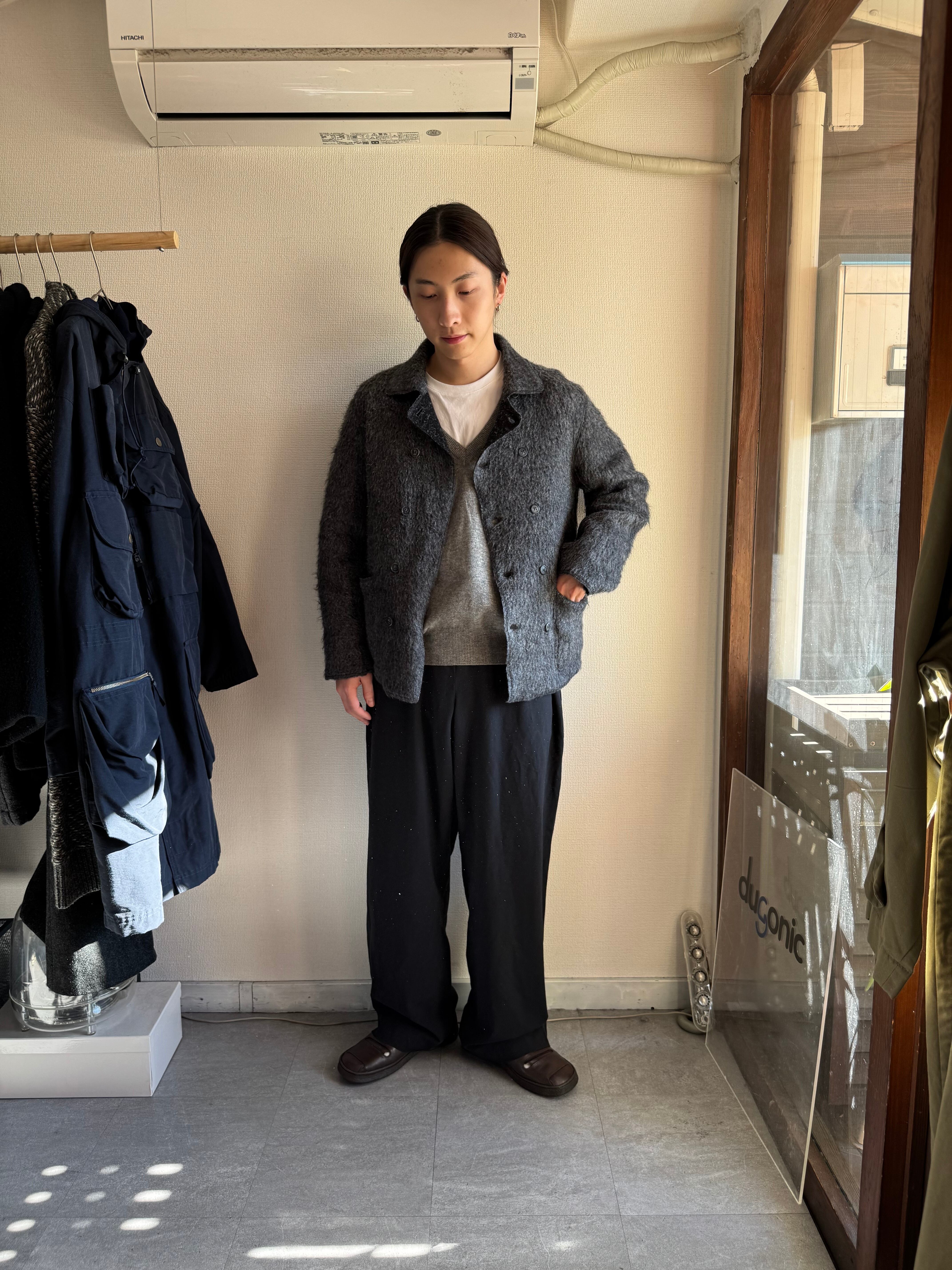 荒々しさのある毛羽立ったウール生地ですが上品さを感じる1着。