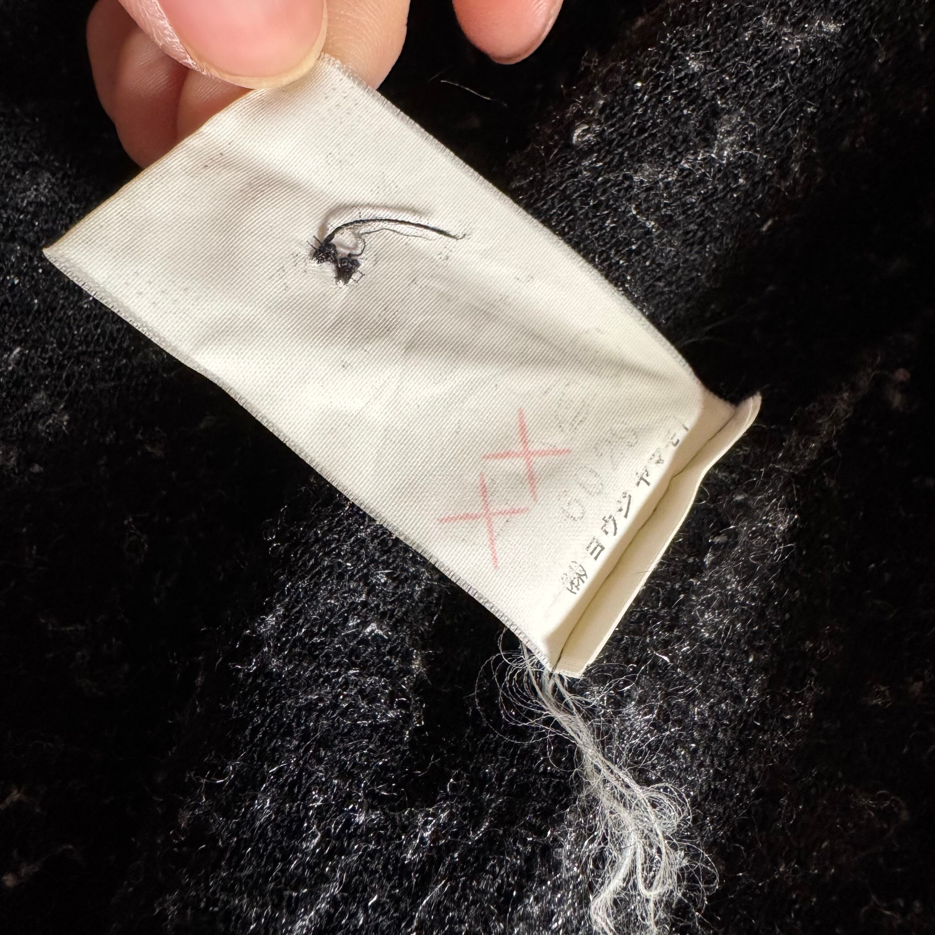 ケアタグがかすれてほぼ読めなくなってます。