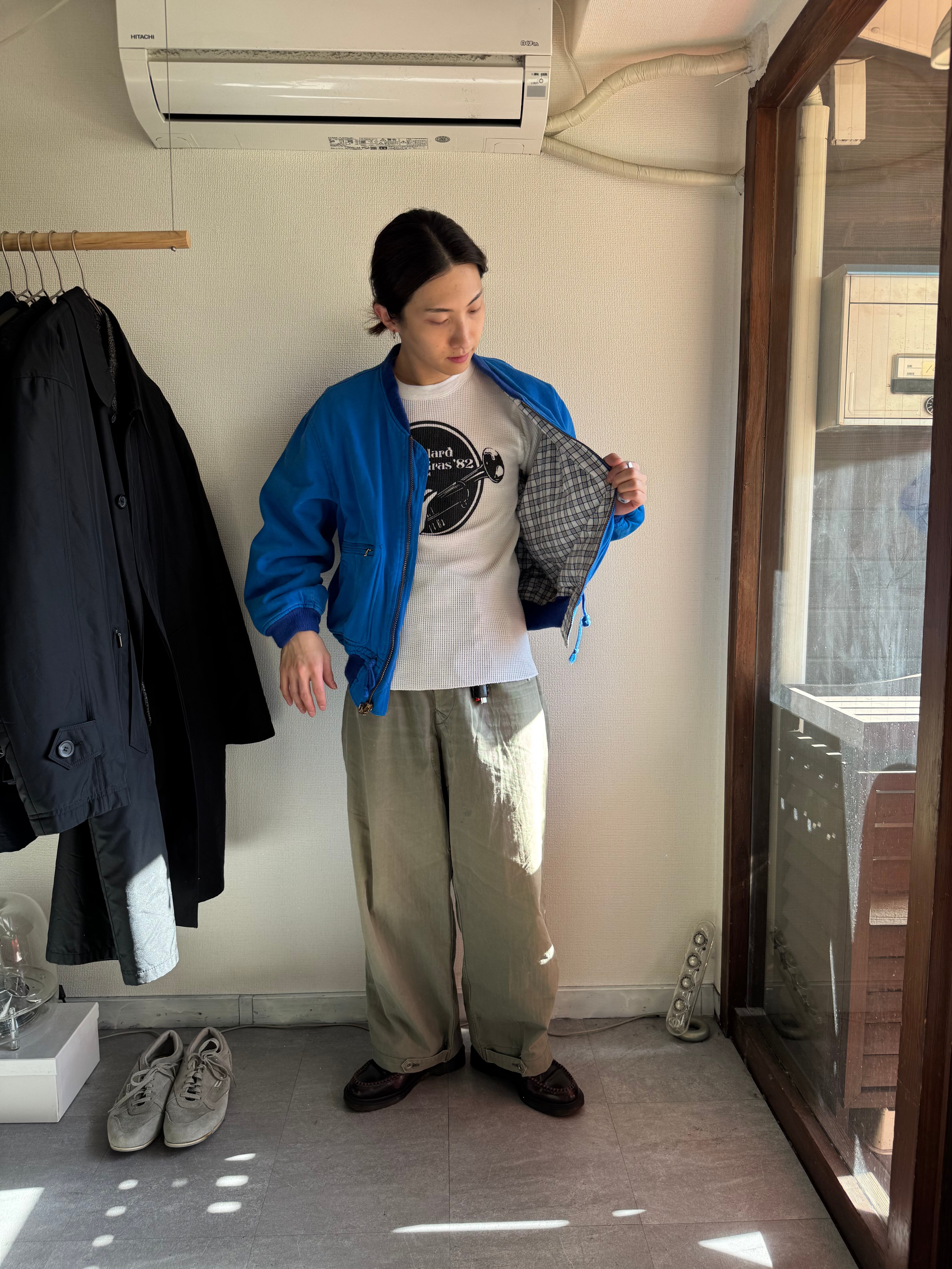 中綿が入っており、丸みのある当時らしいシルエットに発色のいいスカイブルー